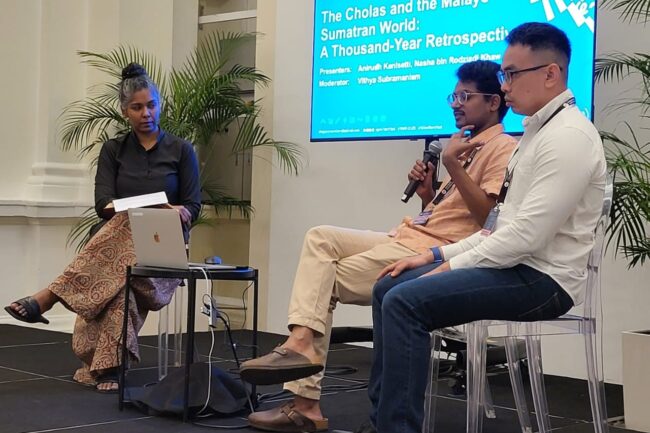 Public historian Anirudh Kanisetti, author of Lords of Earth and Sea, and archaeologist Nasha Rodziadi Khaw, who has led key excavations in Kedah, came together in this dialogue on the Chola dynasty’s engagement with the Malayo-Sumatran world. Marking the millennium of Rajendra’s campaign, this conversation reflected on the enduring legacies of Tamil–Southeast Asian ties.